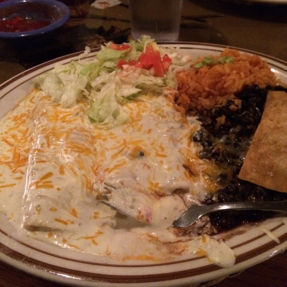Stuffed with tender, seasoned chicken and generously covered in sauce and cheese, the Chicken Enchilada is another crowd-pleaser. It’s a great option for those who want something a little heartier but still classic. Many guests enjoy it with the house green chili or the cream cheese jalapeño sauce for an extra layer of flavor.