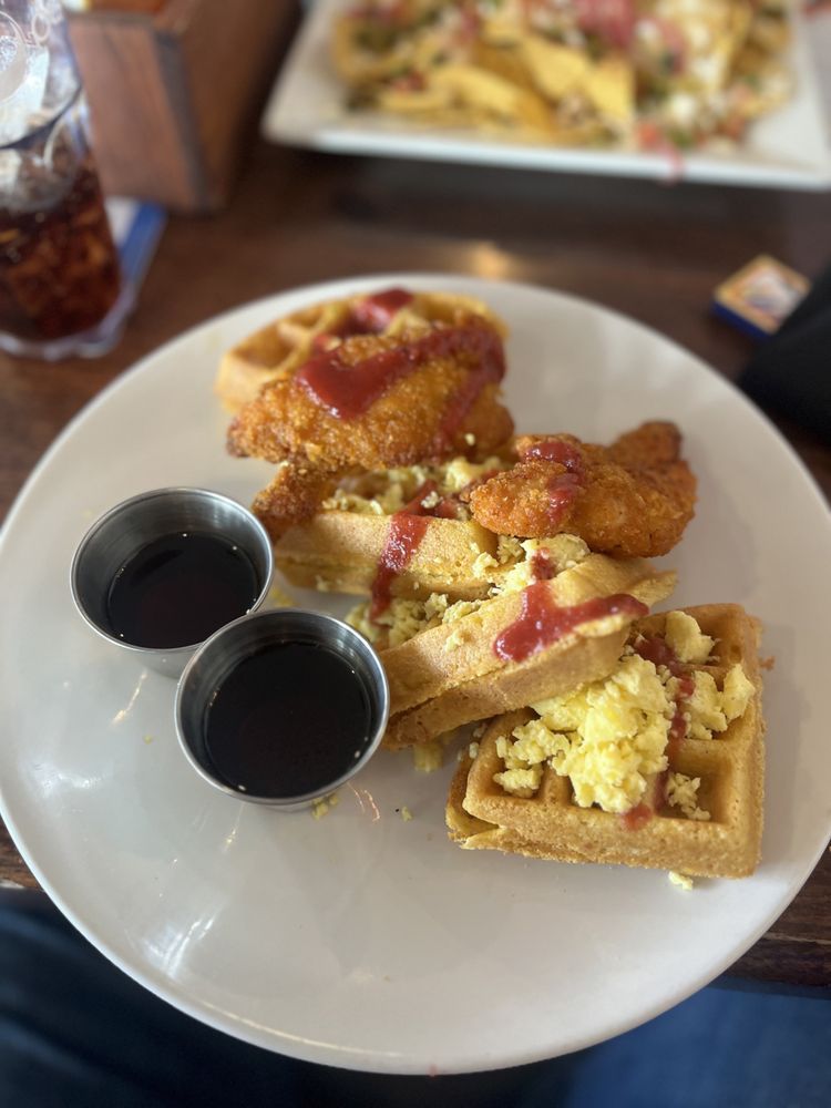 This bold take on a brunch classic delivers just the right kick. The crispy Nashville-style chicken is spicy without being overwhelming, nestled on top of golden waffles that strike a perfect balance of sweet and savory. It’s a popular pick during the bustling Sunday brunch, where locals enjoy pairing it with $4 mimosas and scenic views from the upstairs balcony. If you like a little heat with your comfort food, this one’s worth trying.