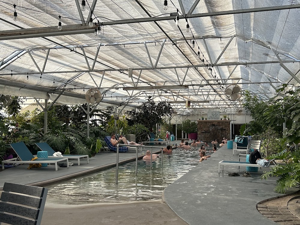 Step inside “The Greenhouse,” and you’ll feel like you’ve been transported to a tropical haven. This adults-only (21+) section is a beautifully designed space filled with lush plants, creating a warm, humid environment that’s perfect for unwinding. It features several small soaking pools with varying temperatures, so you can find the perfect spot to melt your stress away.