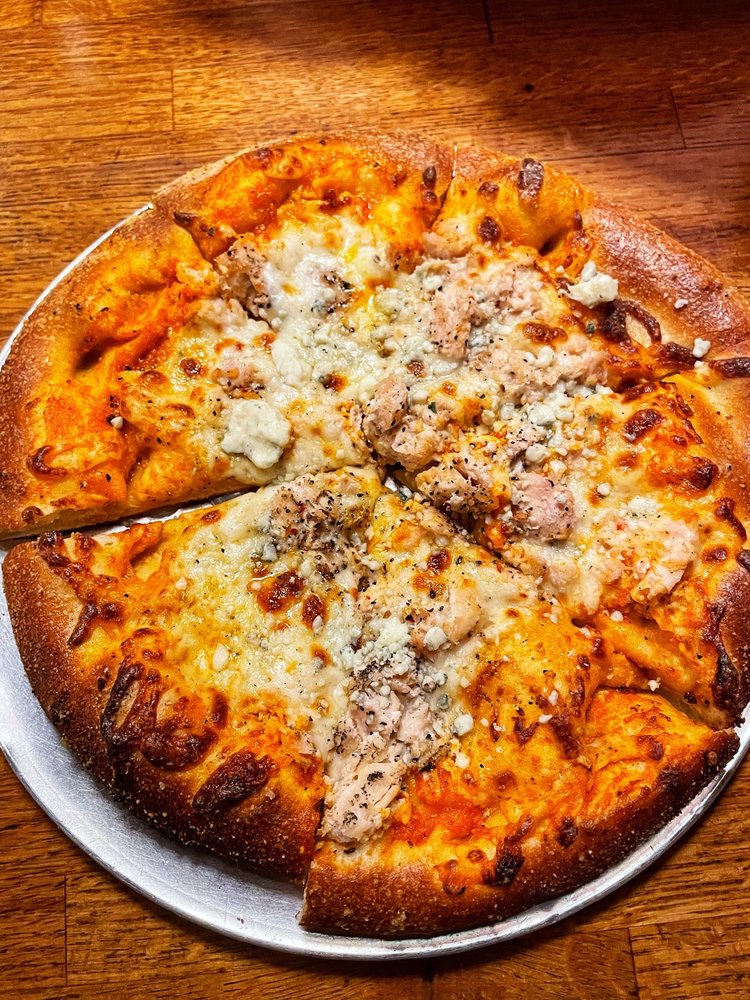 Spicy, tangy, and just the right amount of bold, the Buffalo Chicken Pizza is a hit for those who like a little kick. Topped with tender chunks of chicken and a drizzle of creamy dressing, it balances heat with richness. It’s one of the rotating favorites on the pizza bar, and many guests say it’s worth grabbing a slice or two when it comes around. Even if buffalo sauce isn’t your go-to, this one might just surprise you.