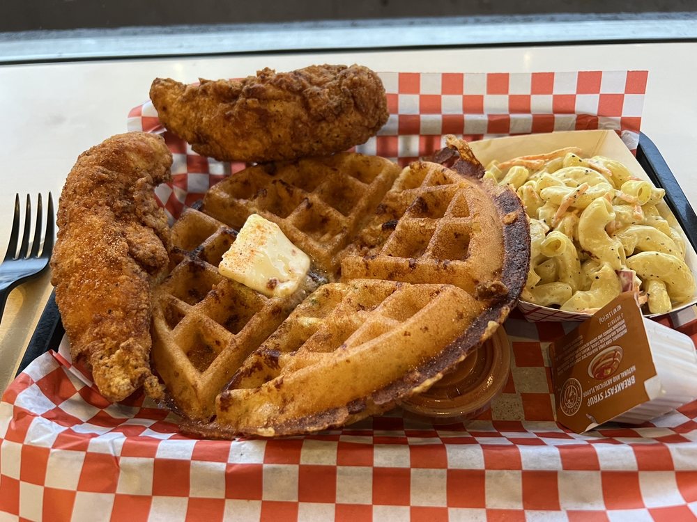 This classic comfort dish is as satisfying as it sounds – crispy, seasoned fried chicken paired with soft, golden waffles. Many diners enjoy the mix of savory and sweet, especially when a drizzle of syrup ties it all together. It’s a popular choice for a weekend treat or a mid-day pick-me-up that feels a little indulgent. The portion is generous, so come hungry or plan to share.