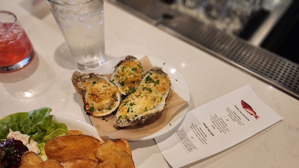 Oyster fans will find plenty to love here, and the roasted oysters are a cozy alternative to the raw classics. Warm and briny with flavorful toppings, they’re often mentioned as a surprise hit – especially when paired with a cocktail on the patio. Whether you’re a seasoned oyster lover or just curious, they’re a tasty way to explore the menu. And if you’re lucky, you might catch them on special during one of the lively 99¢ oyster nights.