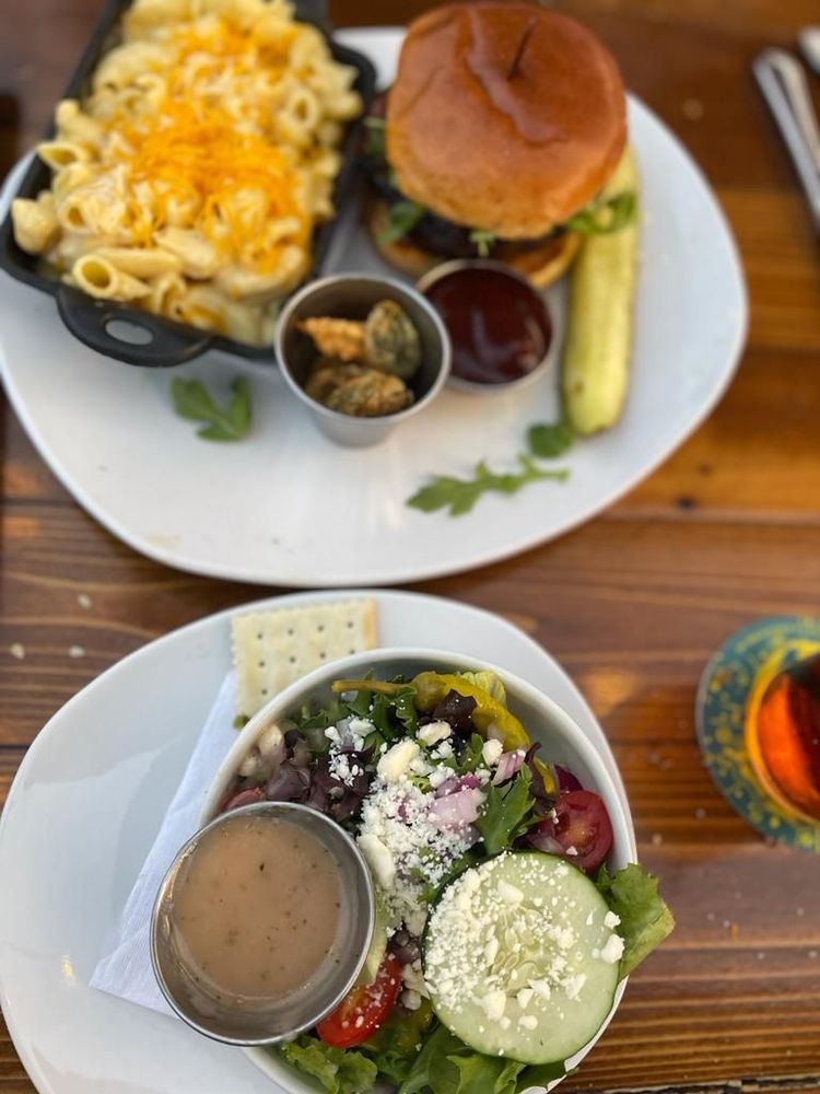 There’s a warm, wood-toned interior with plenty of TVs if you want to catch the game, but it still feels cozy enough for a dinner out. The patio is a big draw, especially when the weather’s nice. It gets busy during events and live music nights, but the energy stays fun without being overwhelming.
