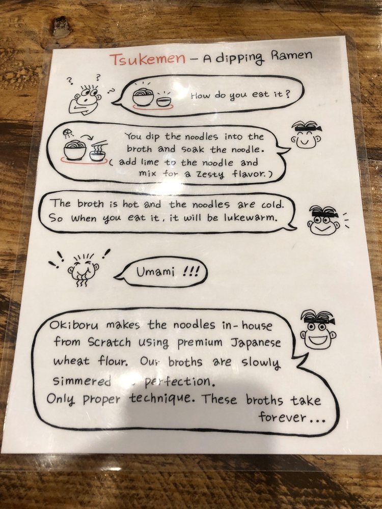 If you’ve never tried tsukemen (dipping noodles) before, don’t worry – Okiboru has you covered. A simple, illustrated guide near the counter walks you through how to enjoy this unique dish. It’s a thoughtful touch that makes the experience more approachable and fun, especially for those curious to try something new.