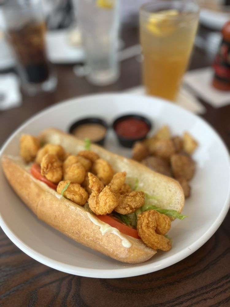 Served on fresh, crusty French bread, the shrimp po boy is piled high with crispy fried shrimp and dressed with lettuce, tomato, and house-made remoulade. It’s a satisfying, no-fuss sandwich that’s packed with flavor and texture. Guests often rave about the generous portion and the perfectly seasoned shrimp that make this handheld a standout.