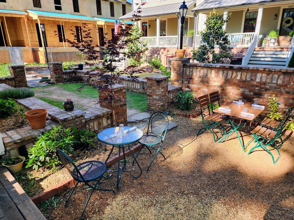 If the weather’s right, the back patio is a real treat. Tucked behind the house and framed by greenery, it’s peaceful without feeling overly quiet – ideal for a leisurely brunch or solo treat with a book in hand. The outdoor space has a casual, garden-party feel that’s perfect for soaking up some Southern sunshine while enjoying your meal.