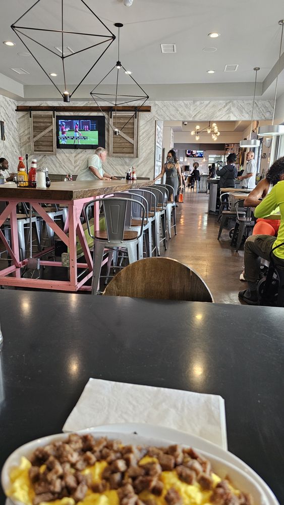 The decor leans clean and modern with just enough personality to feel warm and inviting. There’s a subtle “new age” feel, but nothing over-the-top. It’s the kind of place where you can meet up with friends after church or grab a casual brunch before heading to a game.