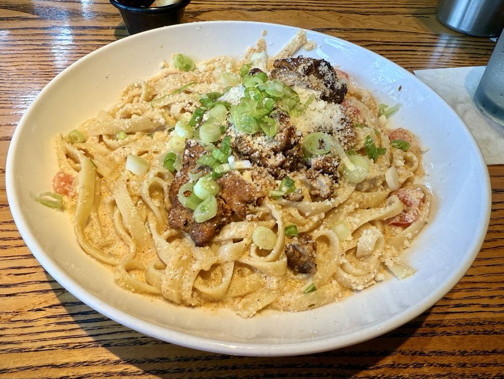 This dish gets high marks for flavor and portion size. The blackened chicken is seasoned just right – spicy but not overwhelming – and served over creamy pasta that’s rich without being too heavy. It’s a favorite for a reason: hearty, well-balanced, and satisfying. Many guests say it’s their go-to entrée every time they visit.